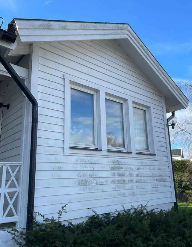 För att undvika skadligt höga tryck så använder vi istället effektiva rengöringsmedel som inte bara gör vårat jobb mer skonsamt utan även eliminerar all påväxt ända ner till roten. Ett sådant resultat får du inte av att applicera ett högt tryck, påväxten elimineras inte helt och kan sedan växa tillbaka igen på nytt…
